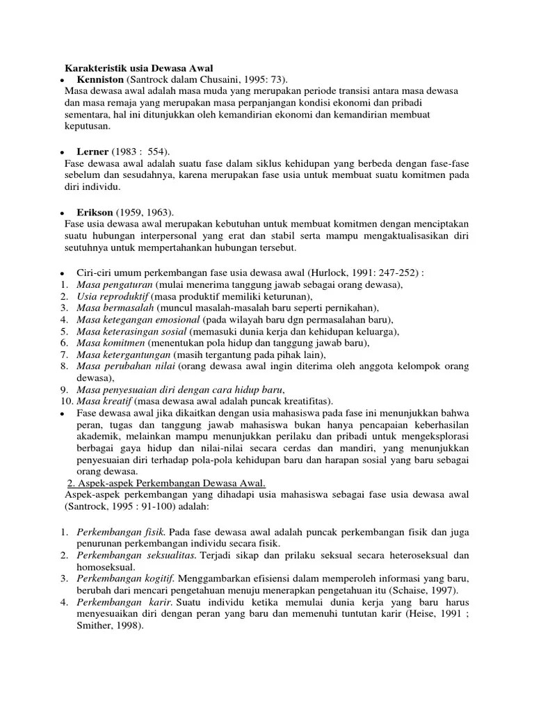 jurnal info media, 2008), 67. masa dewasa awal adalah masa beralihnya padangan egosentris menjadi sikap yang empati. Rita eka izzaty msi yulia ayriza phd psikologi perkembangan dewasa dan lansia batasan usia dewasa awal berada di rentang usia 18 hingga 40 tahun. D.belajar hidup sebagai suami/ istri. Menyesuaikan diri terhadap perubahan fisik.
