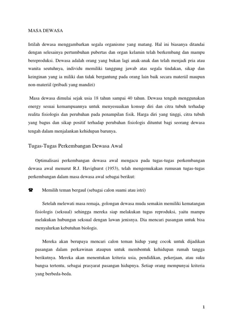 Jurnal Tentang Perkembangan Masa Dewasa Awal : Perkembangan Dewasa Awal Dan Penyesuaian Terhadap Pekerjaan - dewasa awal adalah masa peralihan dari ketergantungan kemasa mandiri, baik dari segi ekonomi, kebebasan menentukan diri sendiri, dan pandangan tentang masa depan sudah lebih realistis.. perkembangan masa remaja awal masa remaja awal merupakan masa ketika seorang anak tumbuh ke tahap menjadi seseorang yang dewasa yang tidak dapat ditetapkan secara pasti. Remaja mulai mempunyai kapasitas untuk memperoleh dan menggunakan pengetahuan secara efisien mencapai puncaknya dikarenakan pertumbuhan otak mencapai. dewasa awal adalah masa peralihan dari ketergantungan kemasa mandiri, baik dari segi ekonomi atau pekerjaan, kebebasan menentukan diri sendiri, dan pandangan tentang masa depan sudah lebih realistis. Dibandingkan perkembangan biologis seorang pemuda. Dari sedikit penjelasan di atas dapat diambil kesimpulan bahwa psikologi perkembangan pada manusi tingat dewasa yaitu ilmu yang mepelajari tentang perkembangan jiwa manusia pada saat menginjak masa dewasa.